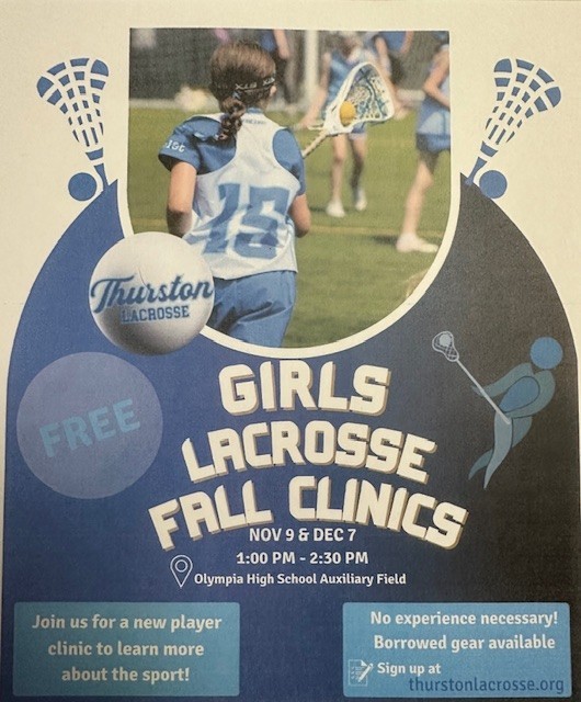 | November 9th and December 7th, 2025 | Olympia, WA | Girls Lacrosse Fall Clinics | thurstonlacrosse.org |