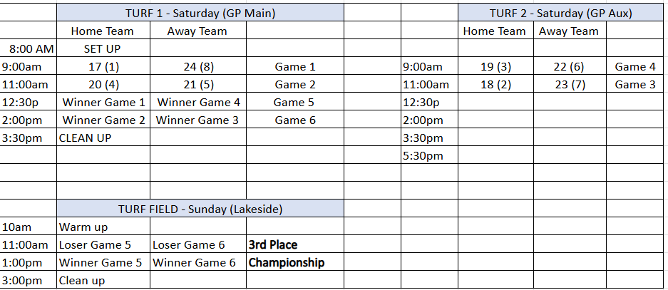 Rainier Cup is comprised of teams 17-24 in the power rankings. This year, the tournament will take place on Saturday, May 9th at Glacier Peak HS and Sunday, May 10th at Lakeside High School. Below is the schedule.